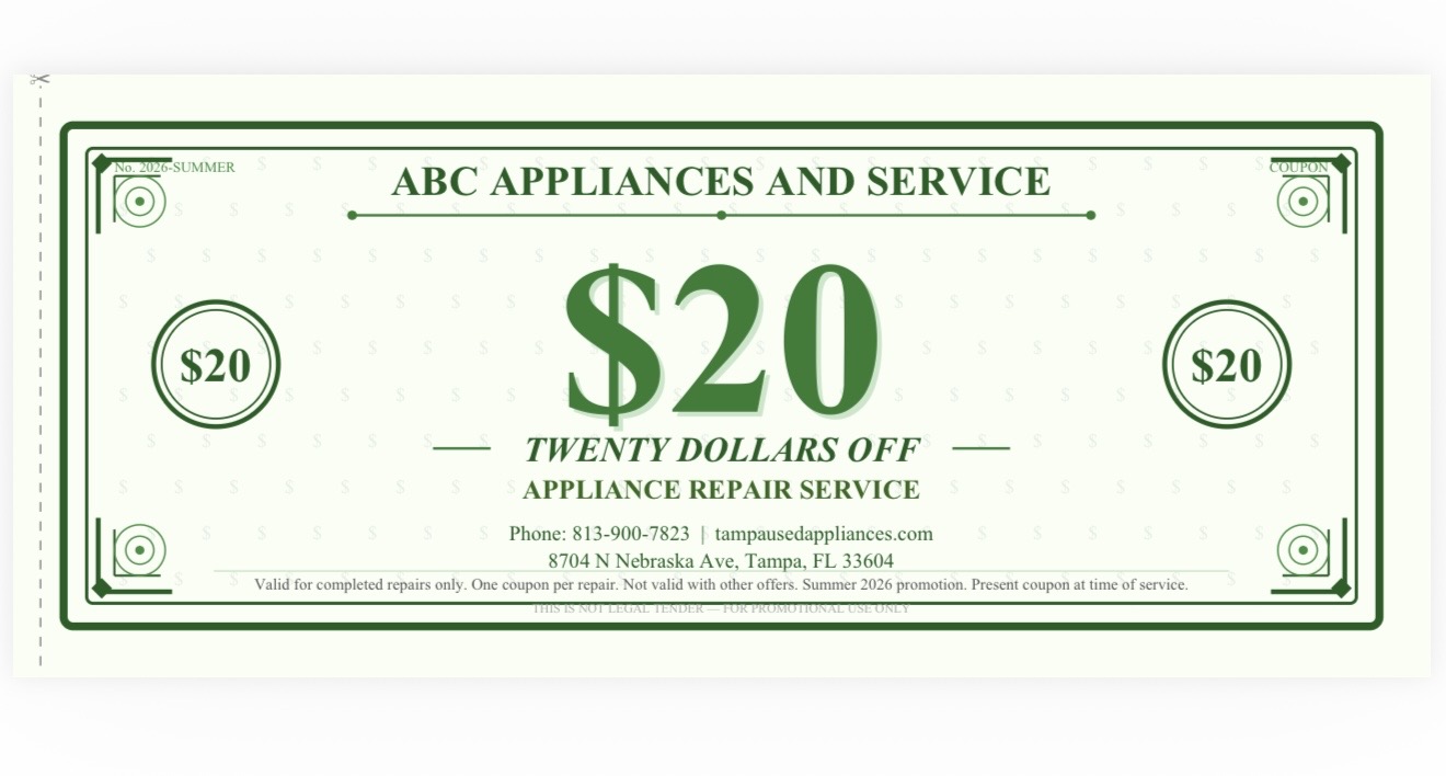 At ABC Appliances & Service, we understand that you have a busy life. That is why we offer same-day service and Saturday appointments from 9 AM to 6 PM. You don’t have to miss work to wait for a repair! If you need reliable appliance repair in Tampa, we are the local team you can trust for honest and professional service. Don’t let a mountain of wet laundry stress you out. Visit us today at 8704 N. Nebraska Ave or call us at 813-900-7823 to book your appointment. We are ready to hit the road and get your dryer back in action!